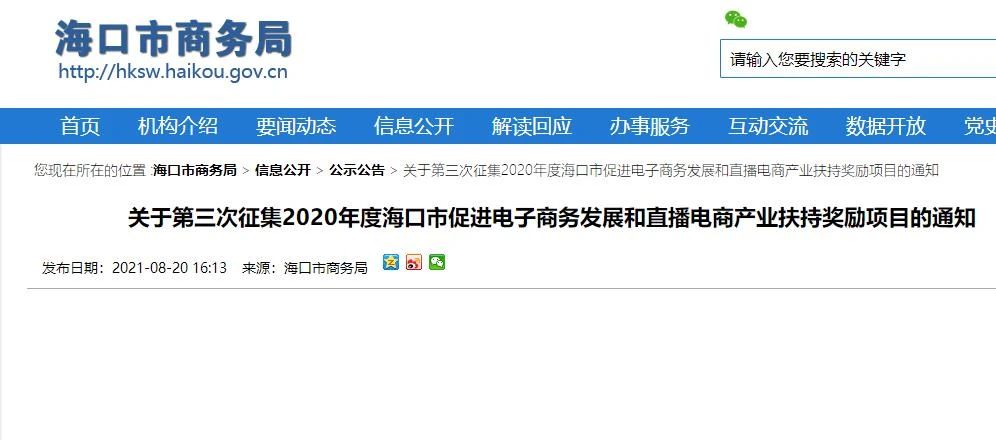 目的企業(yè)及機構(gòu)、個人,按照《關(guān)于征集2020年度??谑写龠M電子商務(wù)發(fā)展扶持獎勵項目的通知》的要求提交材料;